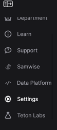 1. Log onto the Teton desktop platform. On the overview side panel, click ‘Settings’: