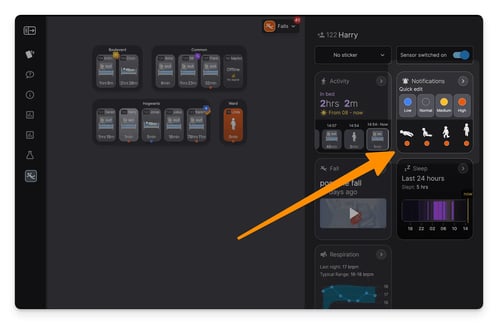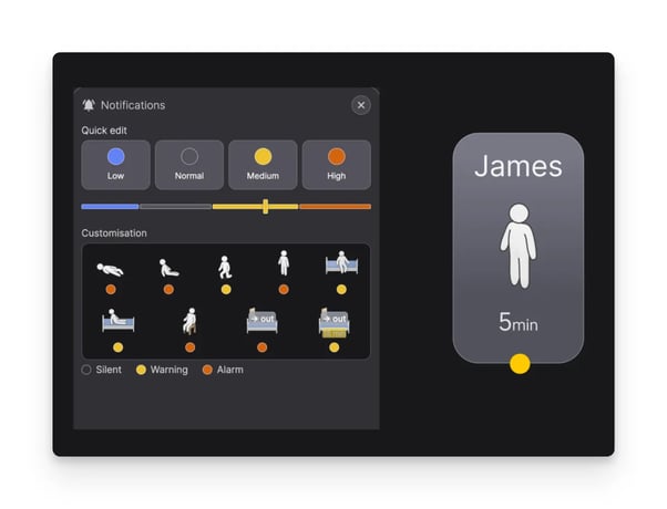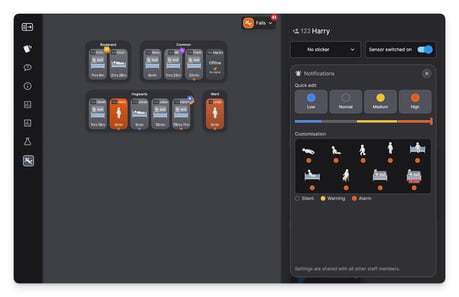 NOTE: The colour of the little risk level circle on the bottom of a resident card is an indicator of how many notifications are selected for a resident, it does not tell you which exact ones are selected. For example in the settings below, the resident has a custom setup with enough alarms to give them a medium risk circle, but not enough alarms to give them a high risk circle.