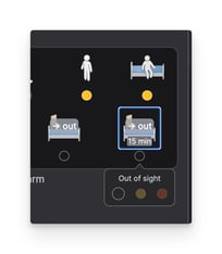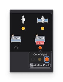For activities where the resident leaves the room, you can choose to receive a time-based alarm that only triggers when the resident has been out of the room for longer than the specified time period. For example, if a resident is independent but you want an alarm if they have been in the bathroom for more than half an hour.