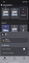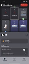 - On the overview, the resident's person card will now display ‘Turned Off’. When you want to activate the sensor again, you follow the exact same process.