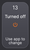 - Clicking this button will ‘flip’ the switch. If it is blue, the device is switched on, if it is grey, the device is switched off.