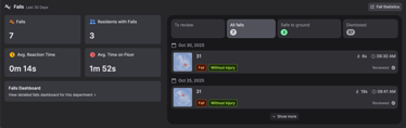 The Department View gives you a simple overview of fall incidents in the department from the last 30 days and allows you to review them.