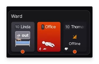 - The system will then wait another 2 minutes, and if the resident is still on the floor then an alarm will be forwarded to all staff who are logged in on a phone, even if they haven’t selected that resident. A little arrow will be added to the card to indicate that this is a forwarded alarm.